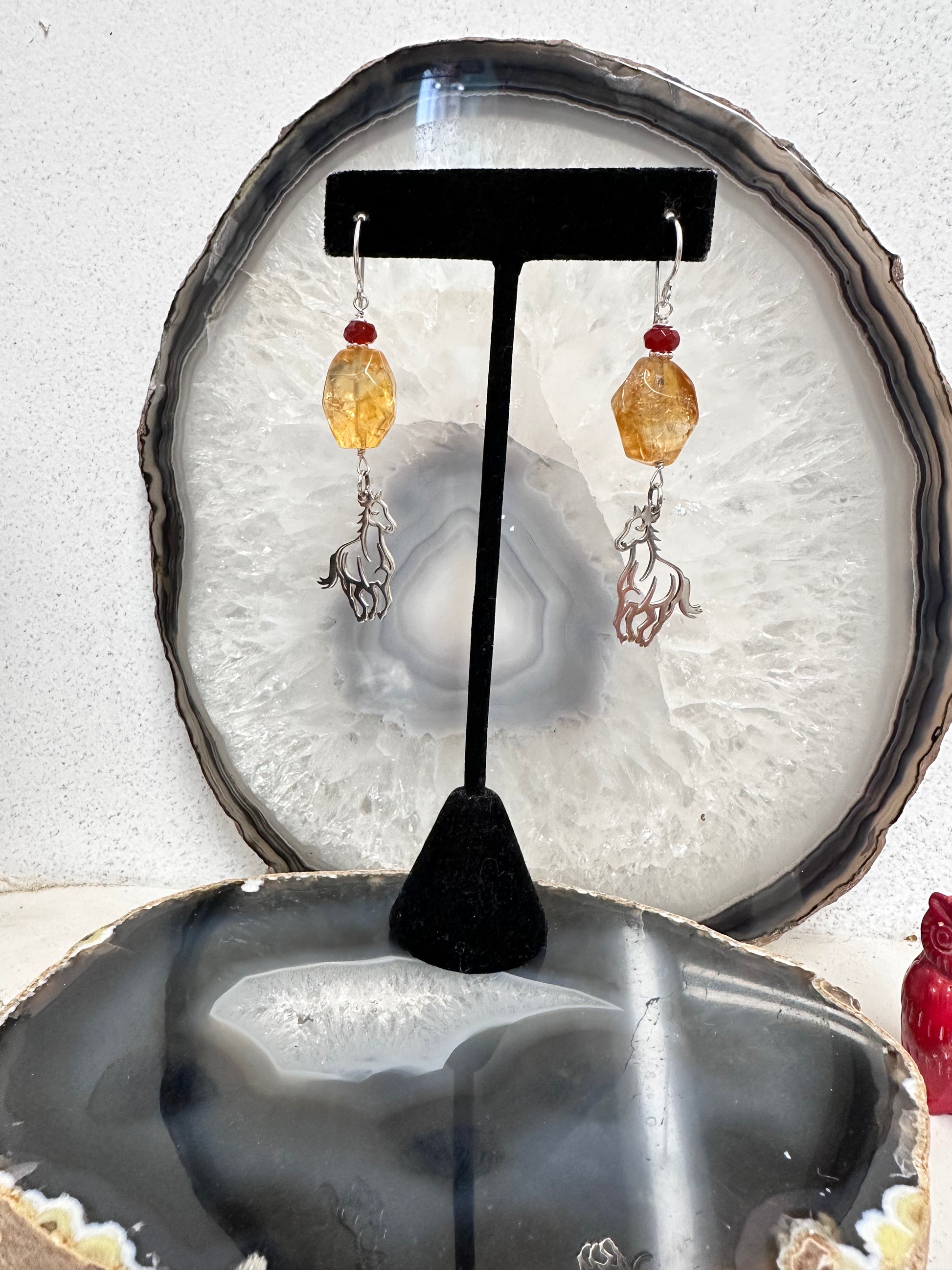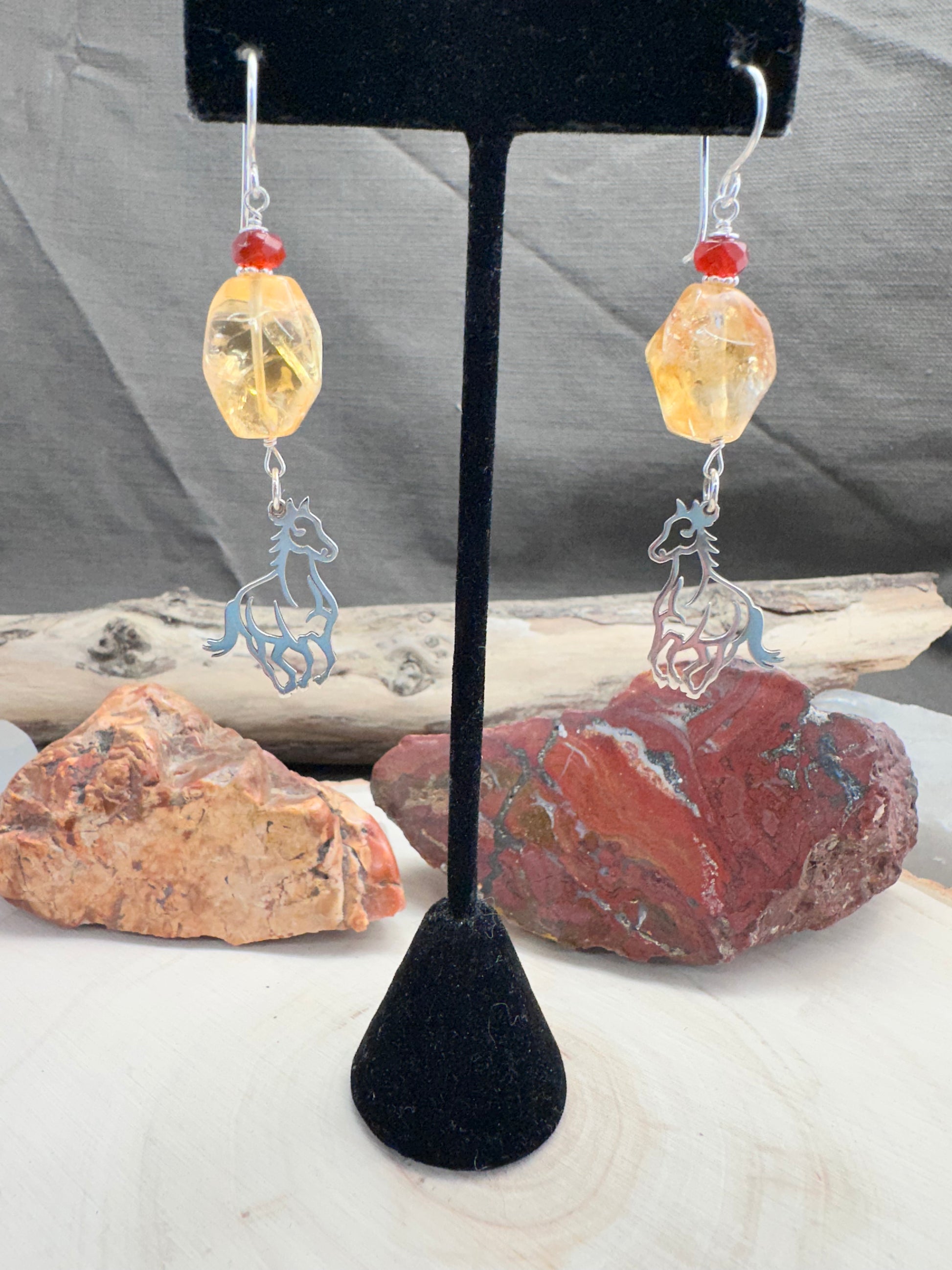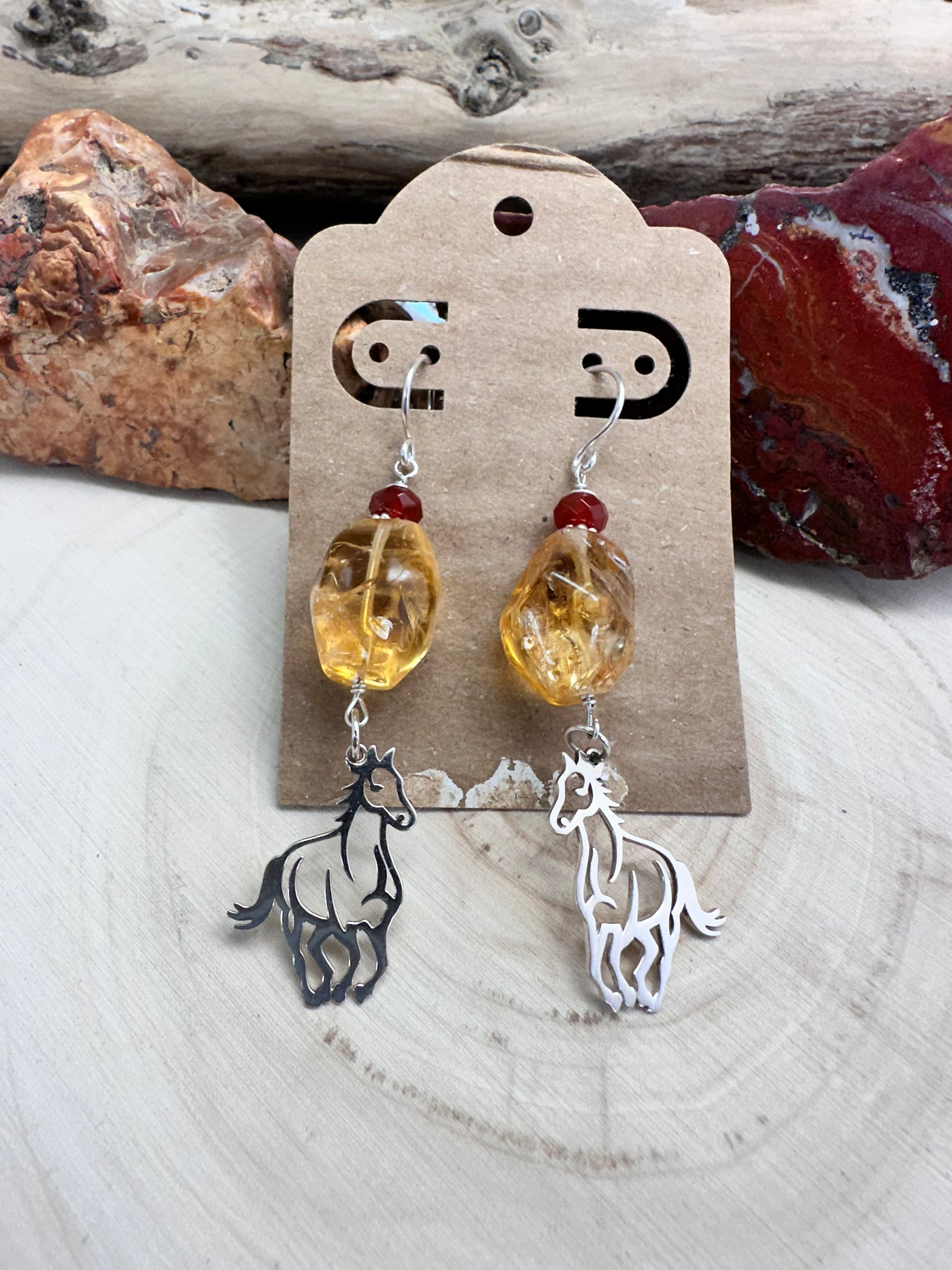 Sterling horse charms wrapped in sterling to citrine, carnelian, and sterling beads, on sterling hooks